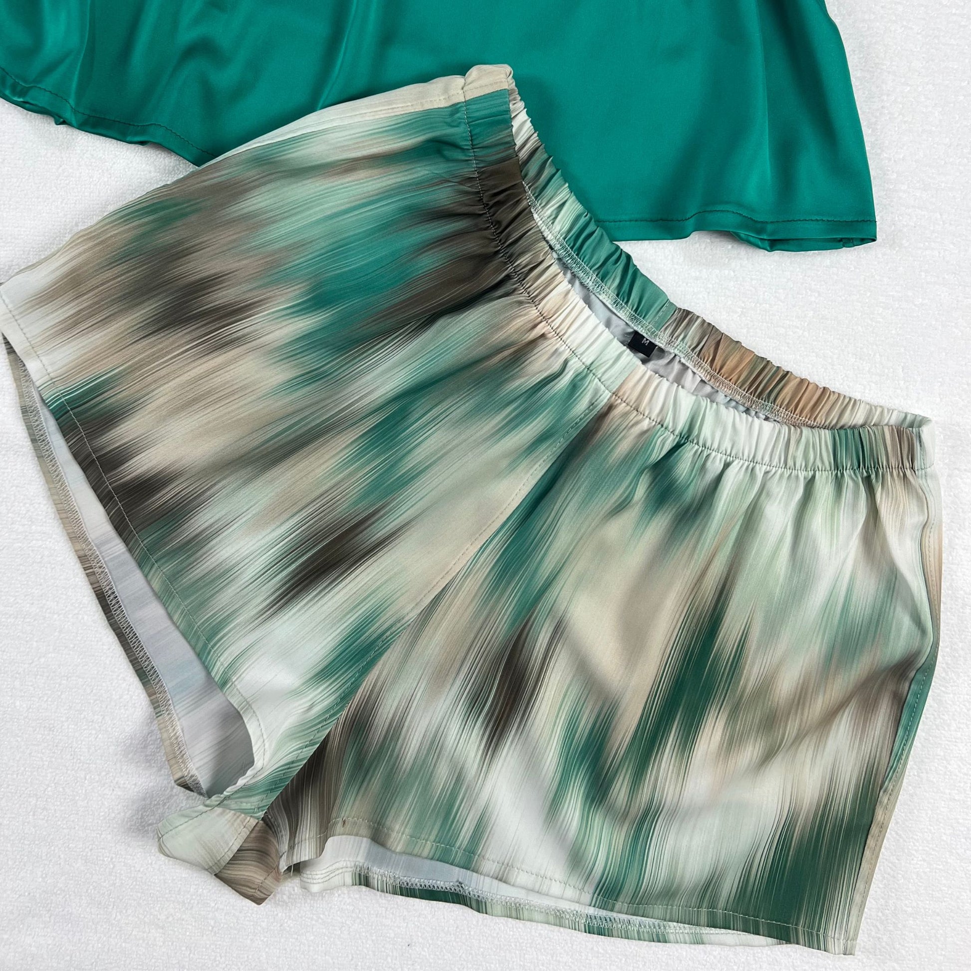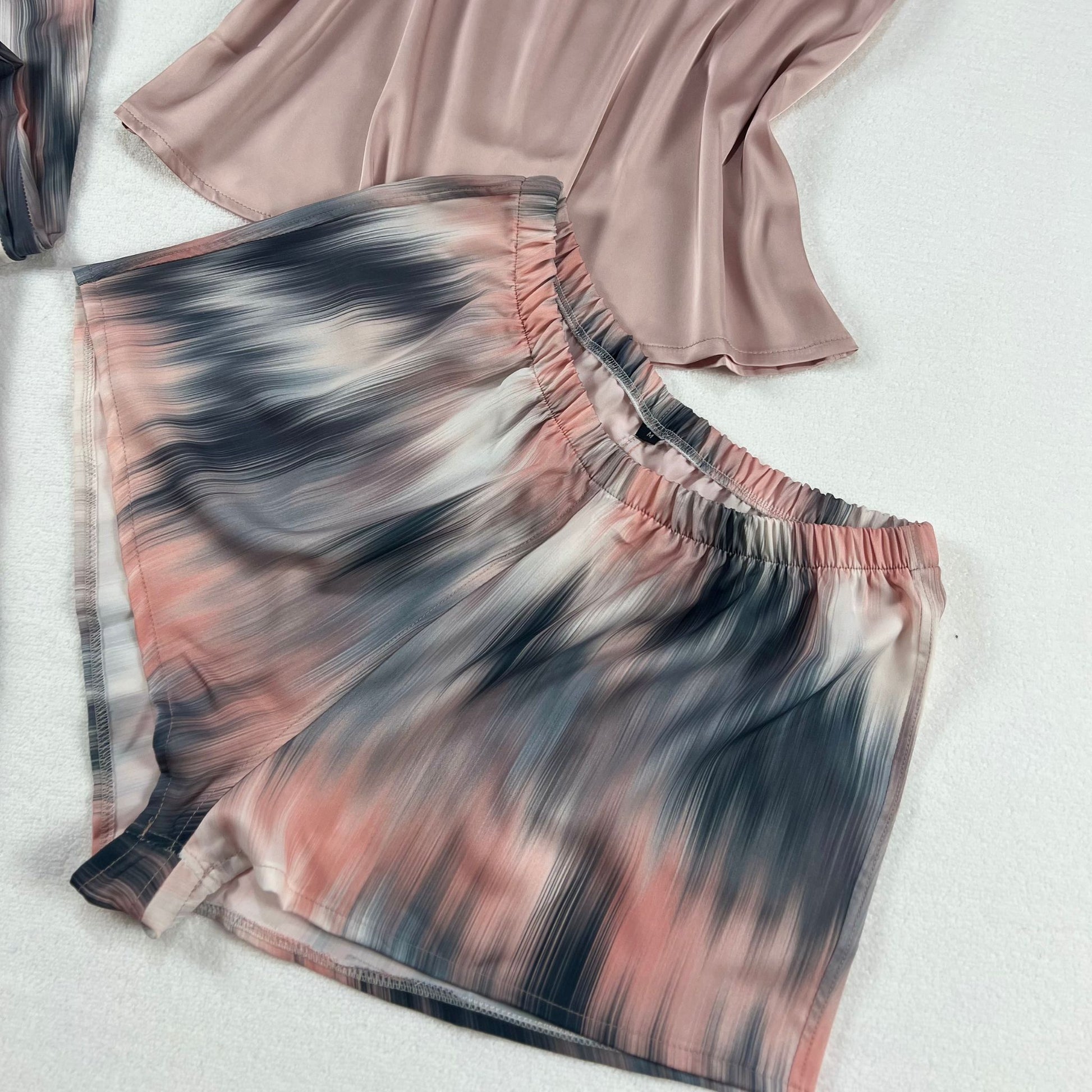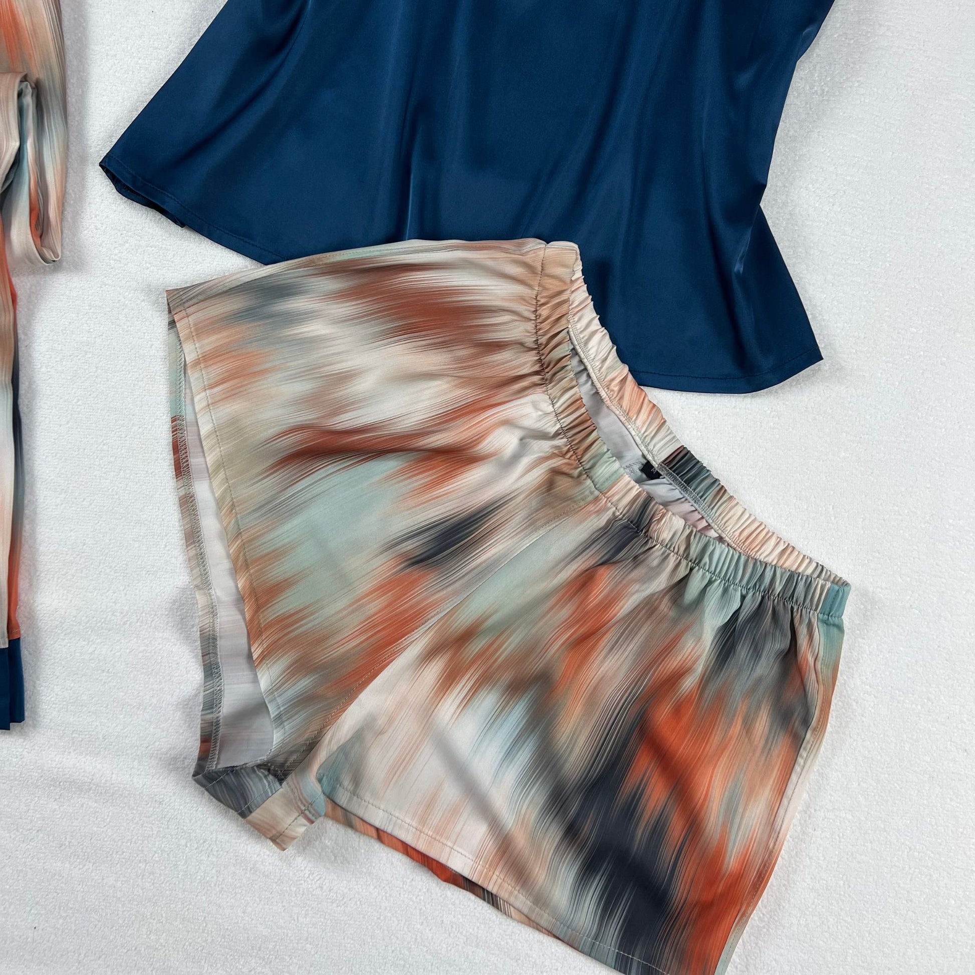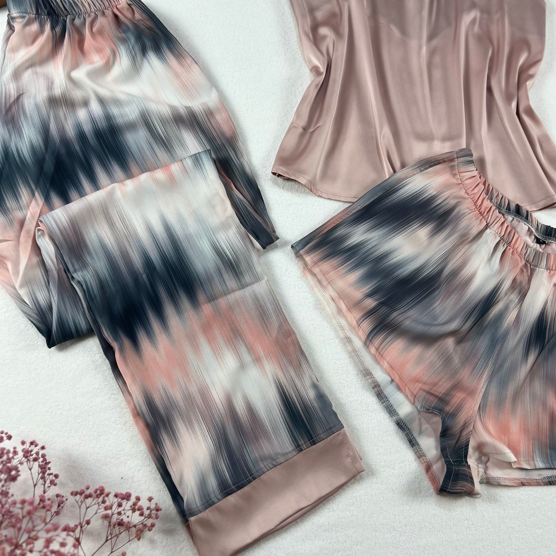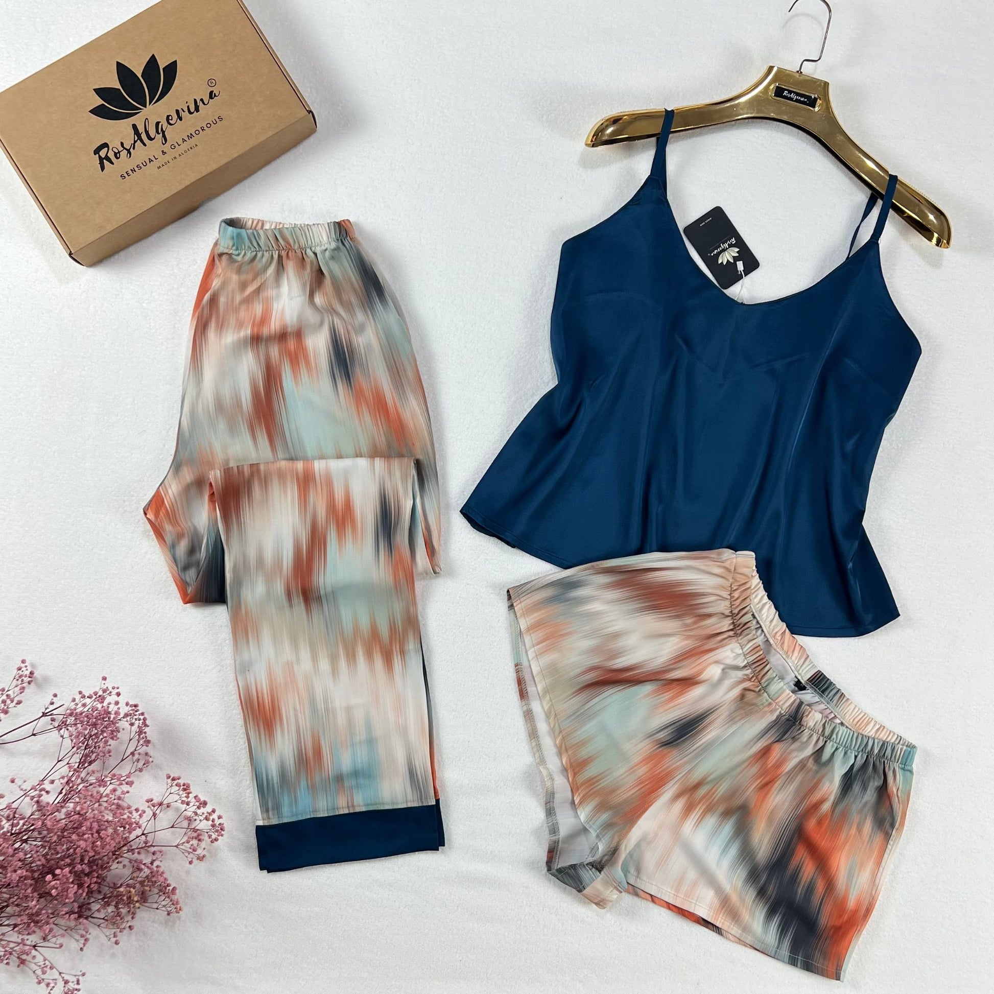 تألقي بإطلالة فاخرة ومريحة مع طقم صوفيا المكون من ثلاث قطع، يجمع بين الأناقة العصرية والراحة المطلقة. يتضمن توب بوستير من شارموز حرير اصطناعي بلون موحد، مع سروال ساتان بطبعة ناعمة بقصة ضيقة عالية الخصر، وشورت كولوت قصير بنفس الطبعة. تنسيق مثالي لأوقات الراحة أو الإطلالات الراقية في المنزل.